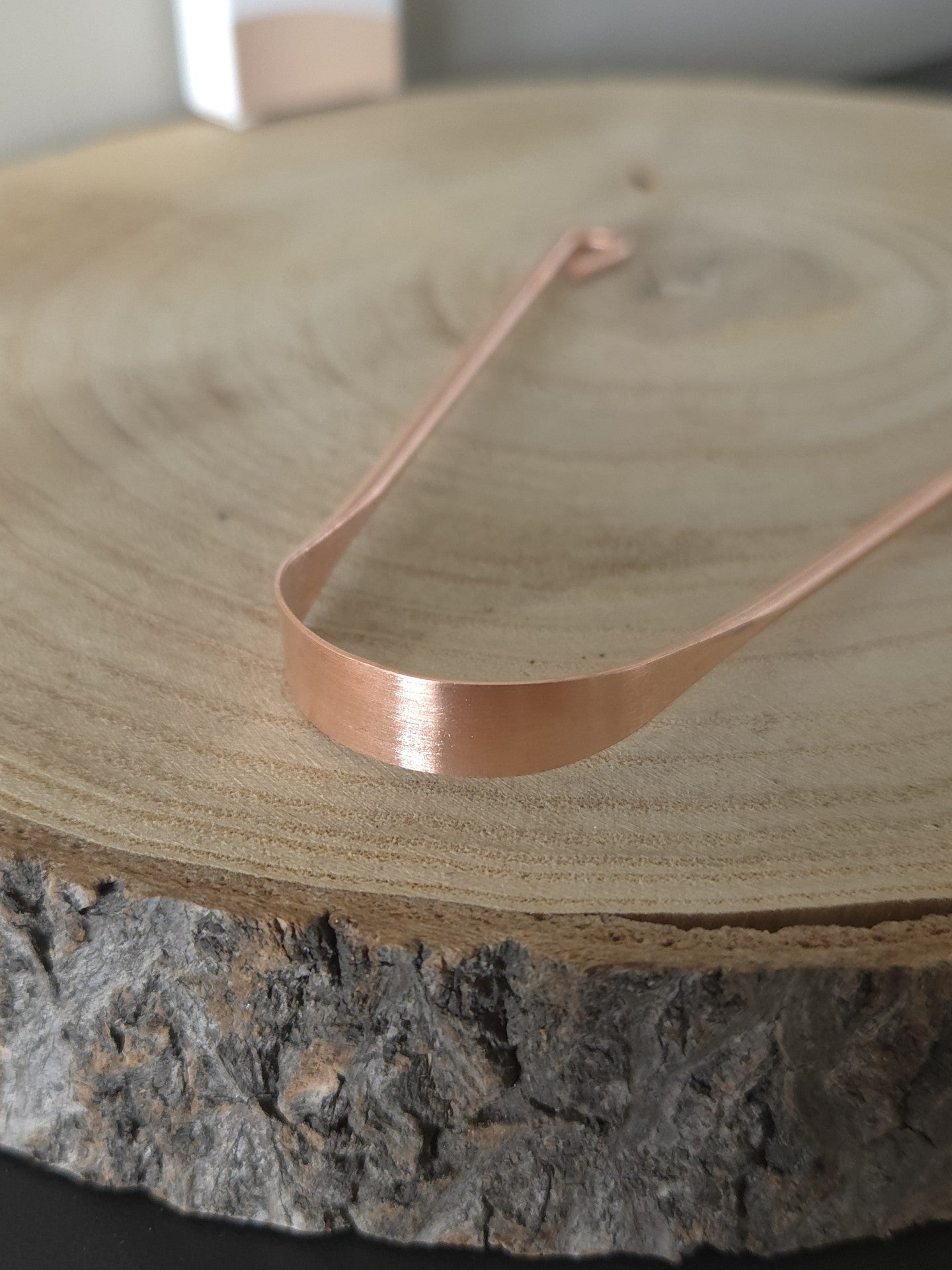 Begin je dag fris en zuiver met deze traditionele tongschraper van puur koper, rechtstreeks uit de Ayurvedische gezondheidsleer. Koper staat bekend om zijn natuurlijke antibacteriële eigenschappen en helpt bij het verwijderen van bacteriën, aanslag en toxines (Ama) op de tong.
