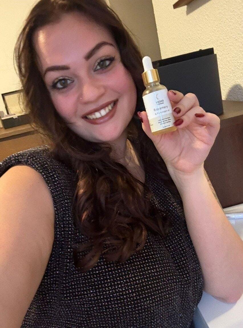 Ik had al van alles geprobeerd tegen haaruitval, maar niets hielp echt.. Tot ik de rozemarijn argan haarolie van Vedasuniverse ontdekte. Na een paar weken gebruik merkte ik al verschil: minder haren in mijn borstel, minder verlies van haren onder de douche.